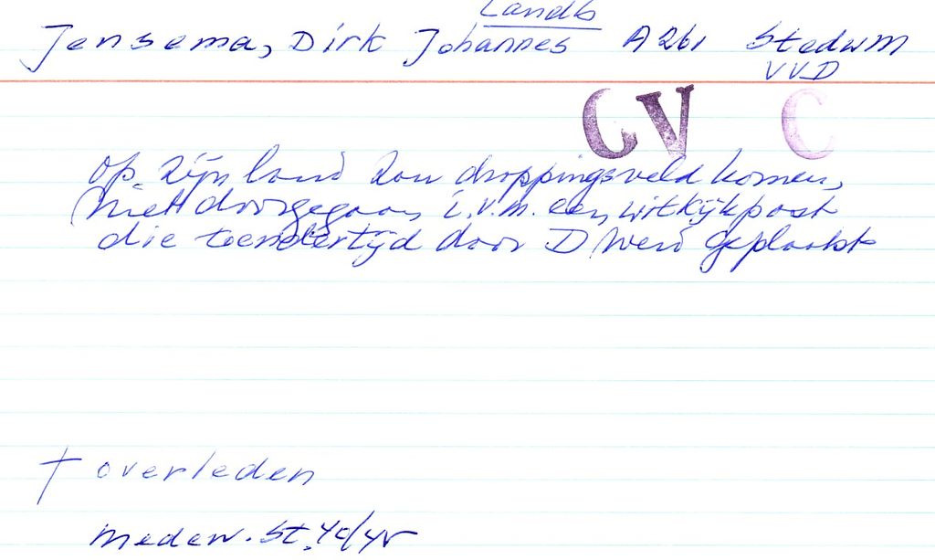 Systeemkaarten met namen van personen uit het verzet: F.J.D. (Bunny) van (Franciscus Johannes Dirk) Doorn