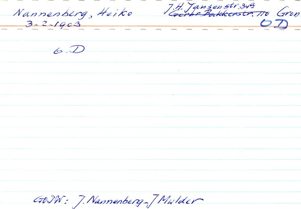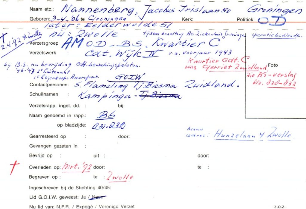 Systeemkaarten met namen van personen uit het verzet: Jakobus Nannenberg