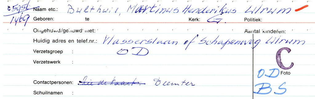 Systeemkaarten met namen van personen uit het verzet: Martinus Grashuis
