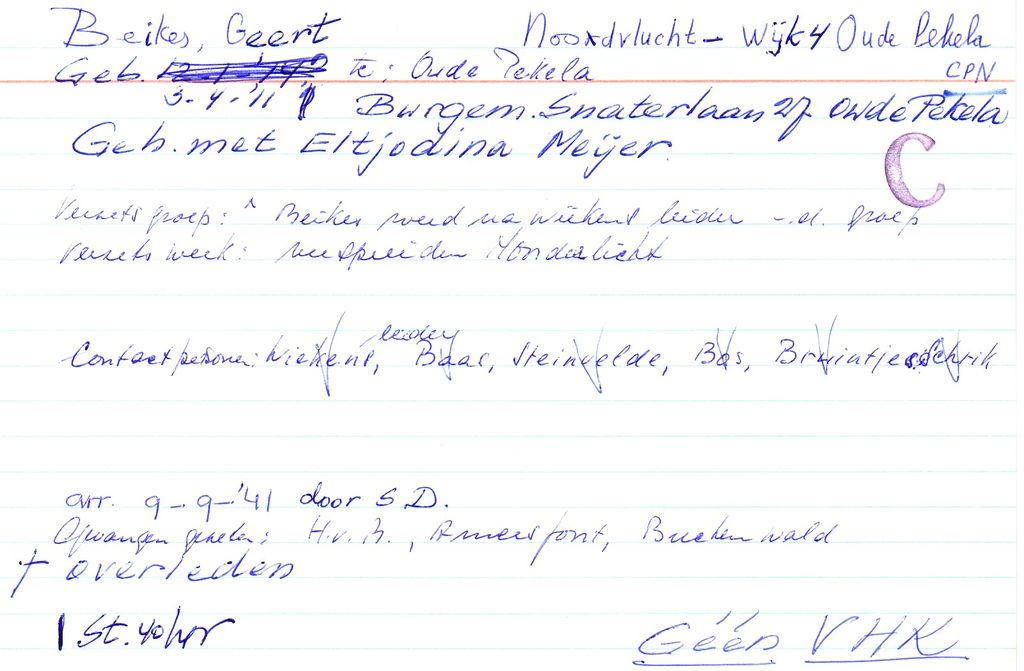 Systeemkaarten met namen van personen uit het verzet: Geert Romijn