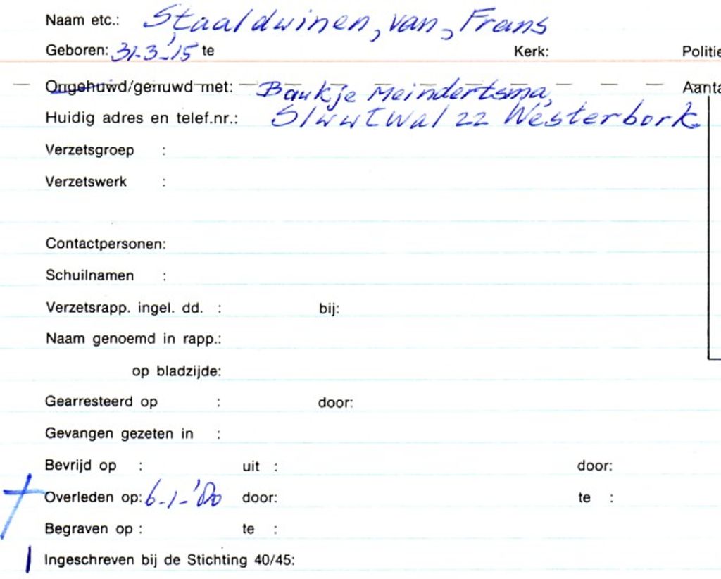 Systeemkaarten met namen van personen uit het verzet: Frans Friedrich Heinrich du Pree