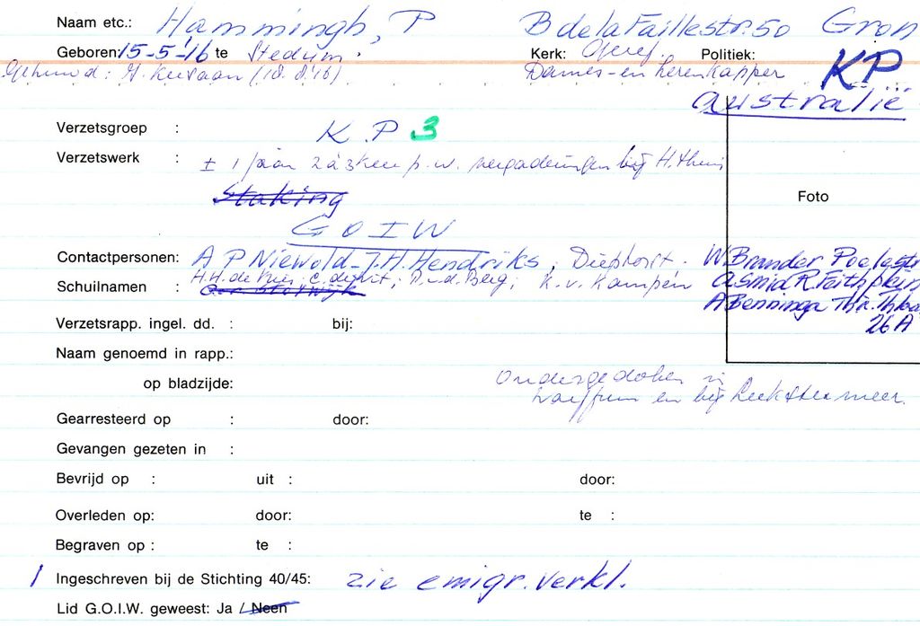 Systeemkaarten met namen van personen uit het verzet: Pieter Bathoorn