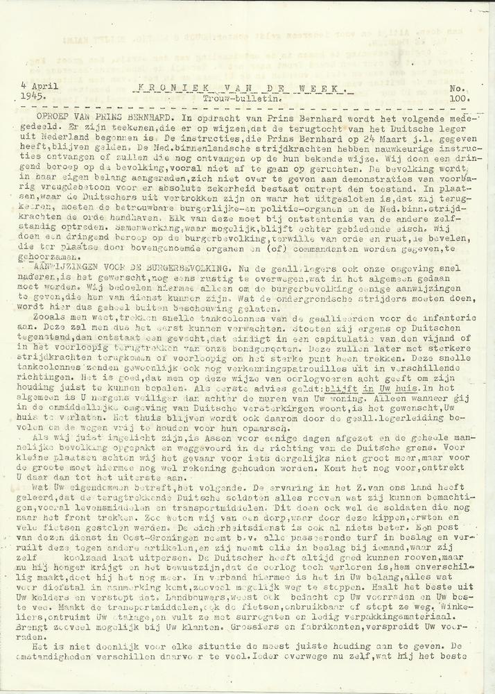 > > Dossier J. Pilkes: brief met oorlogsherinneringen; notities; correspondentie; exemplaar van Trouw en van Kroniek van de week (april 1945); exemplaar van De Post van Volksherstel (1946); vuurwapenmachtiging (1969); bewijs van aanstelling als burgerwacht (1945); etc. etc, 1945-1981