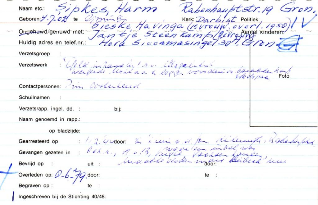 Systeemkaarten met namen van personen uit het verzet: Harm van der Molen