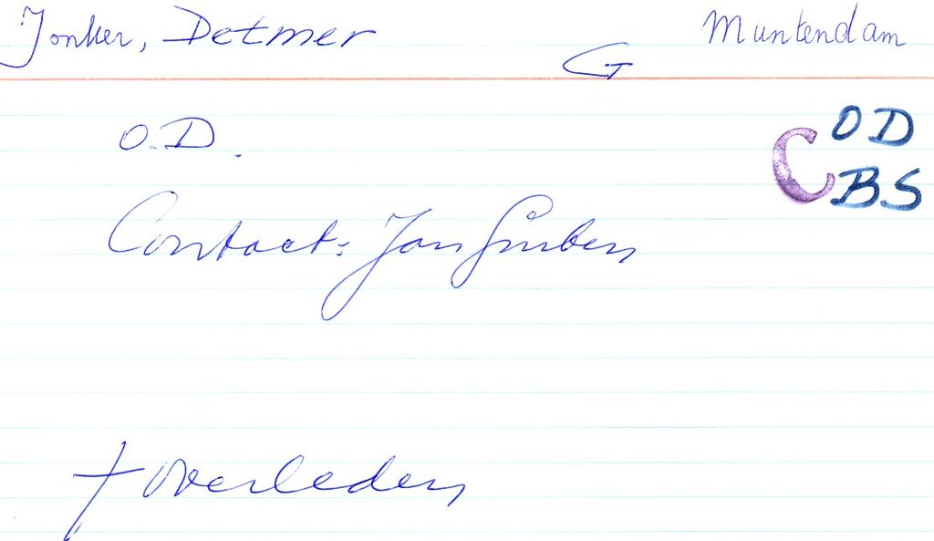 Systeemkaarten met namen van personen uit het verzet: Roelf Jonker
