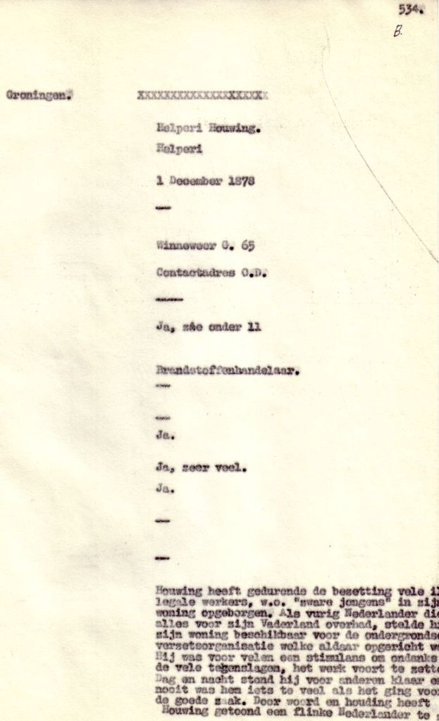 Identificatienummer van Oorlogs- en Verzetscentrum Groningen (OVCG)