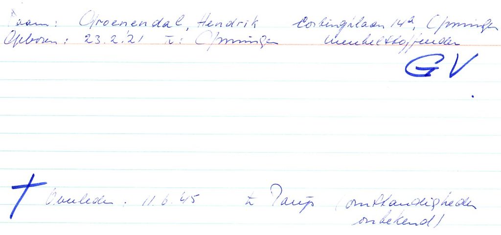 Systeemkaarten met namen van personen uit het verzet: Hendrik (Henny) Zwartenkot
