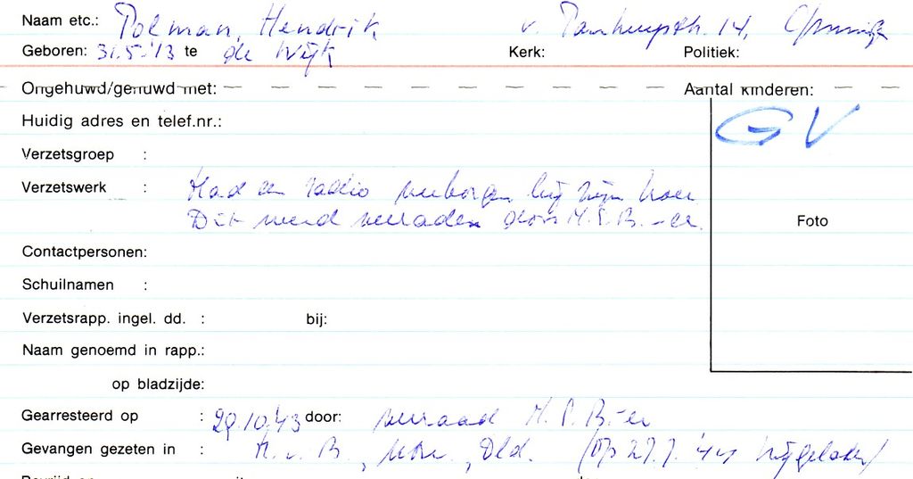 Systeemkaarten met namen van personen uit het verzet: Hendrik Borgers
