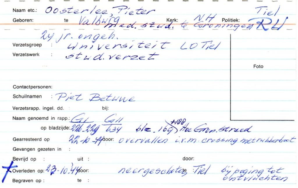 Systeemkaarten met namen van personen uit het verzet: Pieter Sprenkeling
