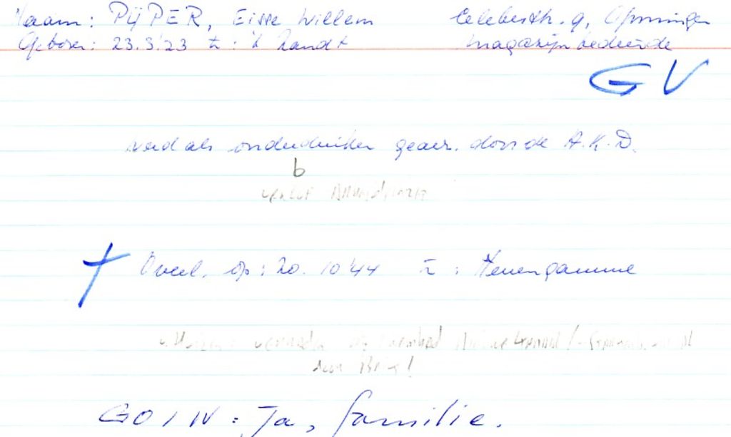Systeemkaarten met namen van personen uit het verzet: Eisse Ritsema