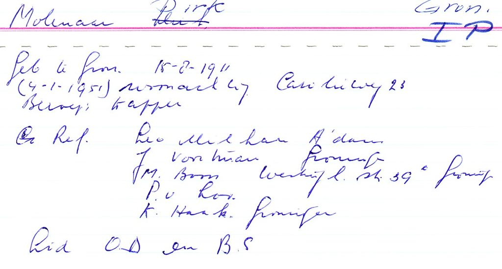 Systeemkaarten met namen van personen uit het verzet: Dirk Pieters