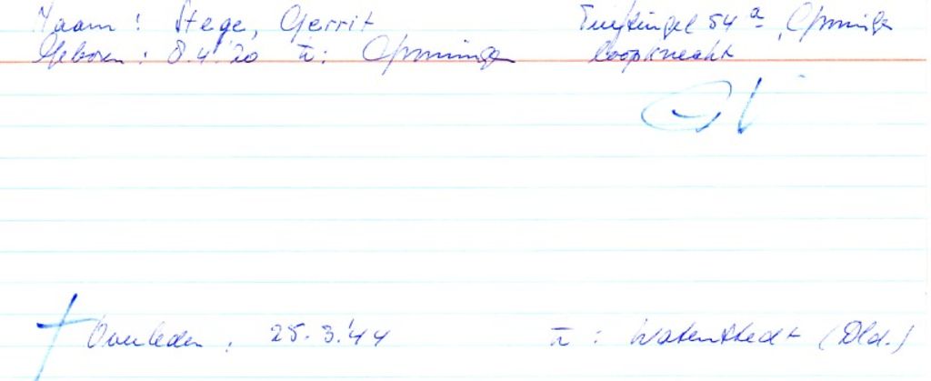 Systeemkaarten met namen van personen uit het verzet: Gerrit van der Werf