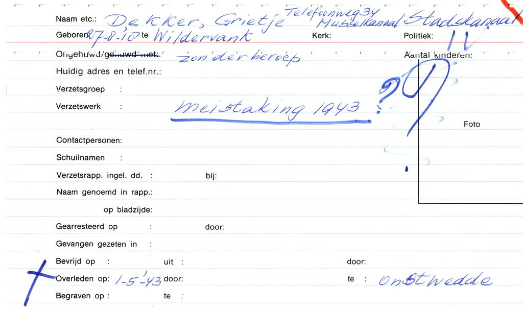 Systeemkaarten met namen van personen uit het verzet: Grietje Hendrikje Aarts