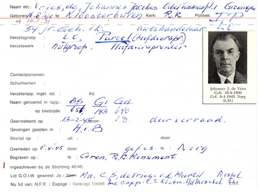 Systeemkaarten met namen van personen uit het verzet: Johannes Jacobus Eskes