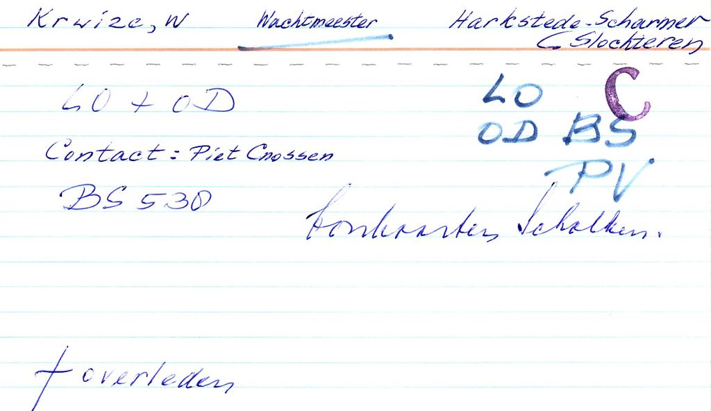 Volgens een brief van M. van Diedenhoven in de map Delfzijl op de hoogte van de overvallen waar zijn zoon Klaas bij betrokken was. Was voor januari 1943 groepscommandant te Slochteren en eind '44 opperwachtmeester in Nieuwolda