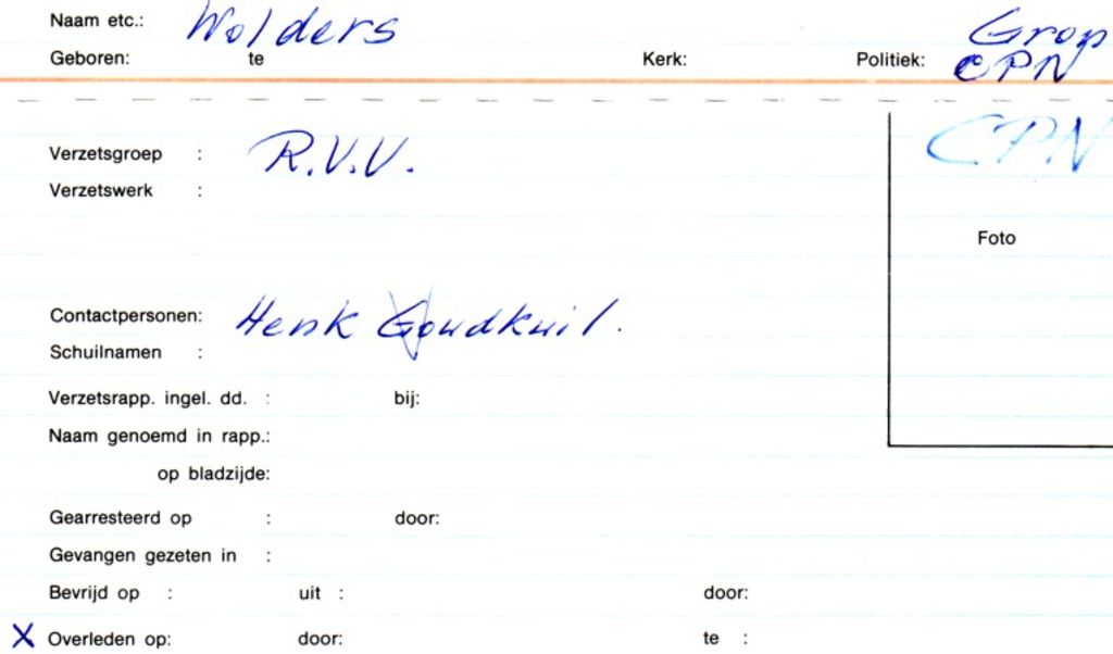 Systeemkaarten met namen van personen uit het verzet: Jan Komdeur