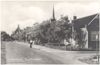 Links Raadhuislaan met op de achtergrond de hervormde kerk, rechts, over de brug, de Pieter Noordelooslaan (en niet de Beukenlaan zoals de foto wordt vermeld), met op de achtergrond de rooms-katholieke kerk St. Jan de Doper.