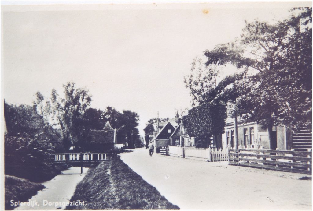 Spierdijk rond 1910. Links de manufacturenzaak van Groot met daarnaast café De Vier Winden. V.l.n.r.: Geertje Degeling, Nel Schilder, Gonda en Anne Ranzijn, Afie Kok, Anne Koopman (later geh. met Sjef Groot), Marie Steur, Nel van Westen, Jansje de Wit, Marie Komen, Trientje en Marie Commandeur, Jaantje Commandeur, met hit Cees Degeling, Anne Commandeur met twee broers, Reinum Koopman (later geh. met Gerbrand Schilder, voor haar Jaap Buis, naast hem Dorus Borst, Klaas Tessel, Ma Buis, Louw Spekken en de drie jongens op voorgrond, rechts, zijn Jac. Dol, Simon Schilder en David Ranzijn Pietersz.