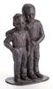 Restant van RK Meissjesschool met oorlogschade. Beeld met knielende mensen naast staande man op de voorgrond.
