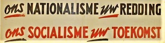 Een rechthoekig affiche met daarop in zwart: "Ons Nationalisme uw redding" en in rood: "Ons socialis...