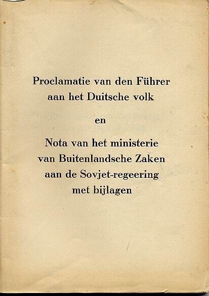 Twee exemplaren van een boekje waarin een overzicht wordt gegeven van gebeurtenissen die uiteindelijk hebben geleid tot de Duitse aanval op de Sovjet-Unie in 1941. Het boekje omvat 93 pagina's.