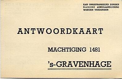 Een niet ingevulde witte antwoordkaart met zwarte opdruk voor de aanvraag van een abonnement op het maandblad "Hamer" door uitgeverij "Hamer" te 's-Gravenhage. Het gaat om een abonnementskeuze voor de periode oktober 1940 - april 1941 of vanaf januari 1941 - juli 1941.