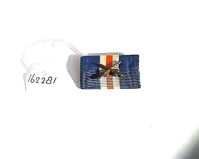 Een baton bestaande uit een met een metalen plaatje omwikkeld door een lint met banen in de kleuren oranje, blauw en wit. Op het lint een koperen speldje in de vorm van twee gekruiste stormdolken. Op de achterkant is een speld aangebracht.