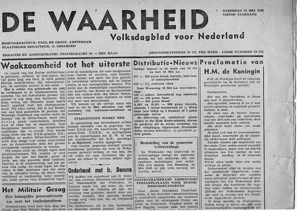 75 exemplaren van het dagblad "De Waarheid. Volksdagblad voor Nederland" jaargang 5 van april tot en met oktober 1945.