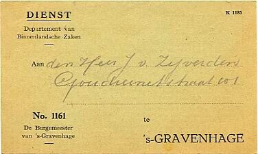 Een oproepkaart in verband met het in ontvangst nemen van een vergoeding van de metaalwaarde van ingeleverde metalen voorwerpen.