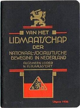 Een blanco NSB pas met reglement: "Van het Lidmaatschap der Nationaal-Socialistische Beweging in Nederland, Algemeen leider Ir. A.A. Mussert".