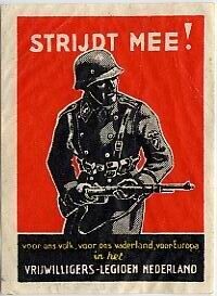Sluitzegel of propagandaplaatje in rood en zwart uitgevoerd met een afbeelding van een Duits militair met een geweer. Op de zegel is de tekst gedrukt: "Strijdt mee, voor ons volk, voor ons vaderland, voor Europa. Vrijwilligers-Legioen Nederland."