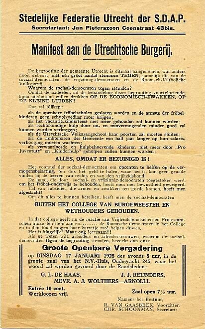 Oproep tot een vergadering van de S.D.A.P. aan de Utrechtse burgerij