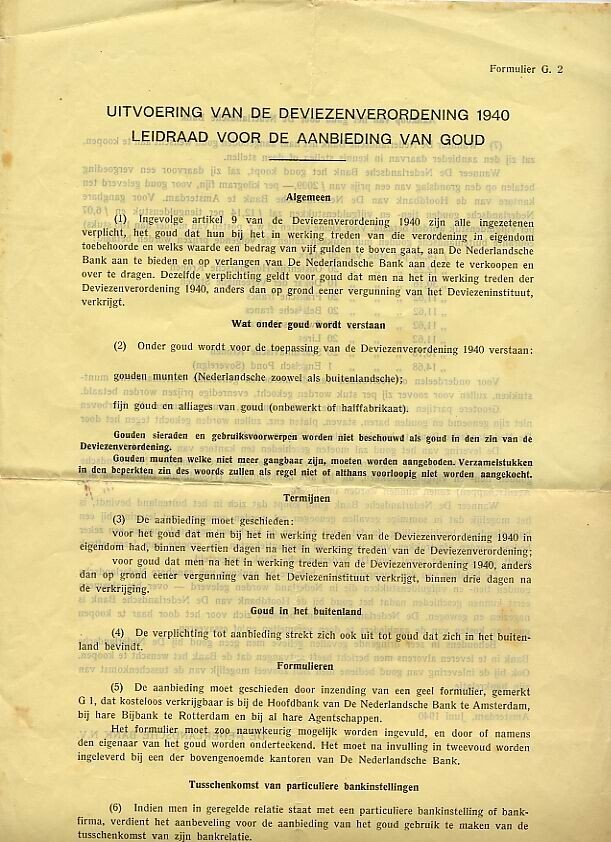 Leidraad voor de verplichte aanbieding van goud aan de Nederlandse Bank, op grond van de Deviezenverordening 1940.
