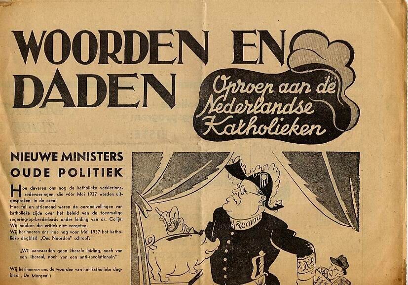 Oproep aan de Nederlandse katholieken. Kritiek van de Rooms-Katholieke Staatspartij dat van het verkiezingsprogram van 1937 niets is terechtgekomen.