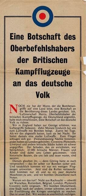 Eine Botschaft des Oberbefehlshabers der Britischen Kampfflugzeuge an das deutsche Volk