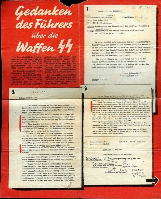Geallieerd (Duitstalig) pamflet waarin gesproken wordt over de 'vrijbrief' die Hitler gegeven zou hebben aan de Waffen-SS.