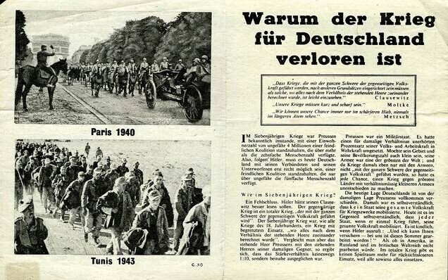 Geallieerd (Duitstalig) pamflet over de onvermijdelijkheid dat Duitsland de oorlog zal gaan verliezen. Dat heeft te maken met de steeds zwaardere luchtaanvallen van de geallieerden op Duitsland.