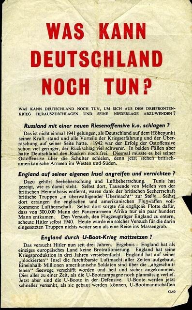 Geallieerd (Duitstalig) pamflet waarin geschreven wordt over de onvermijdelijkheid dat Duitsland de oorlog zal verliezen.