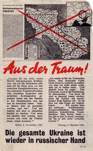 Geallieerd (Duitstalig) pamflet over de betekenis van het verlies van de Oekraïne voor de Duitse voedselvoorziening.