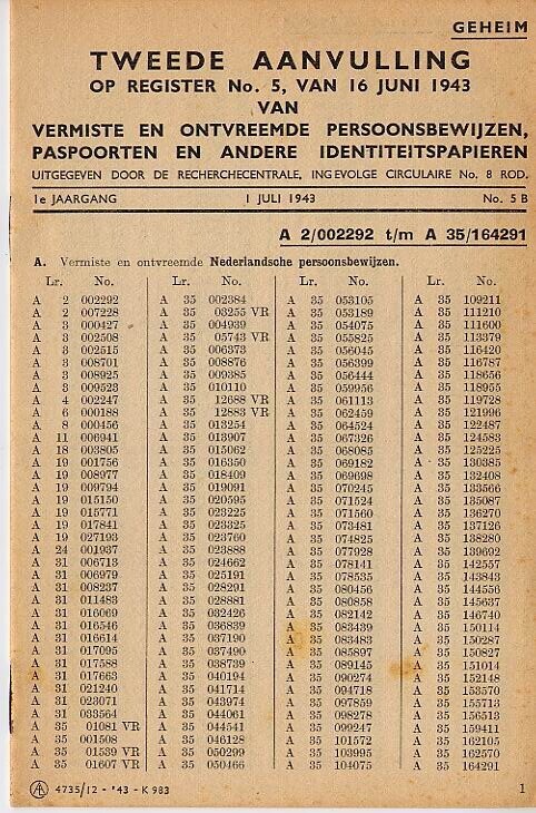 Vermiste en ontvreemde identiteitspapieren - Oorlogsbronnen.nl