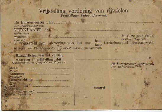 Een nog niet ingevulde vrijstelling van de vordering van rijwielen.