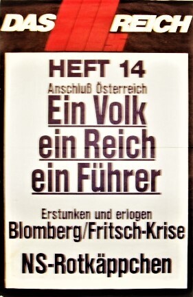 Affiche als reclame voor een uitgave over de 'Anschluss' van Oostenrijk bij het Derde Rijk in 1938 en de rol van de Blomberg–Fritsch crisis daarbij.