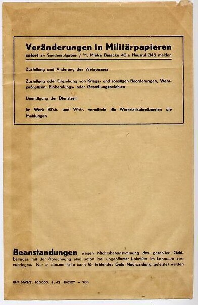 Kleine enveloppe van doorzichtig papier voor militaire documenten.