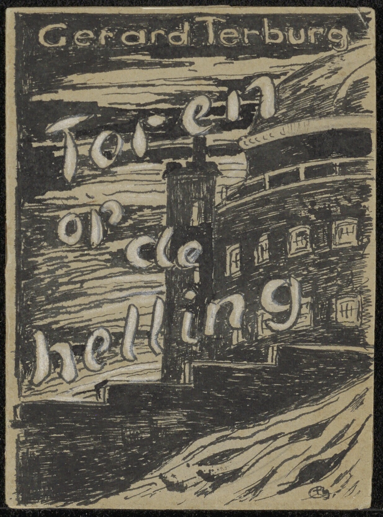 Een zelfgemaakt schriftje met op de voorkant een tekening van een gevangenis, de titel: "Toren op de helling" en bovenaan: "Gerard Terburg". In het schriftje zijn met pen verslagen geschreven waarschijnlijk door twee verschillende personen. Ieder op één pagina. Op elke bladzijde staat met potlood een naam vermeld. Vermoedelijk gemaakt in Kamp Vught na 1945.