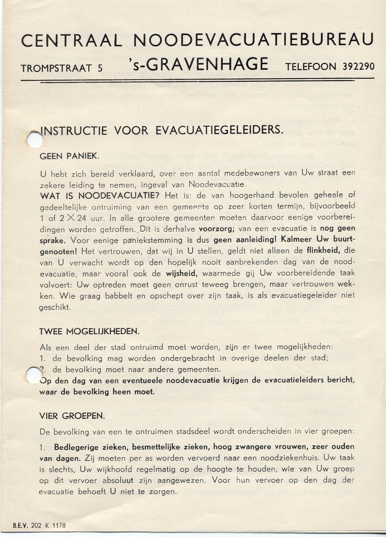 Een instructie voor Wijk-, Blok en Straathoofden over hoe ze hun administratie moeten organiseren. De instructie is afkomstig van het Gemeentelijk Bureau voor Evacuatie Aangelegenheden.