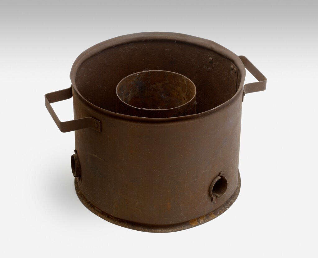 Laag model noodkacheltje met twee handvaten.