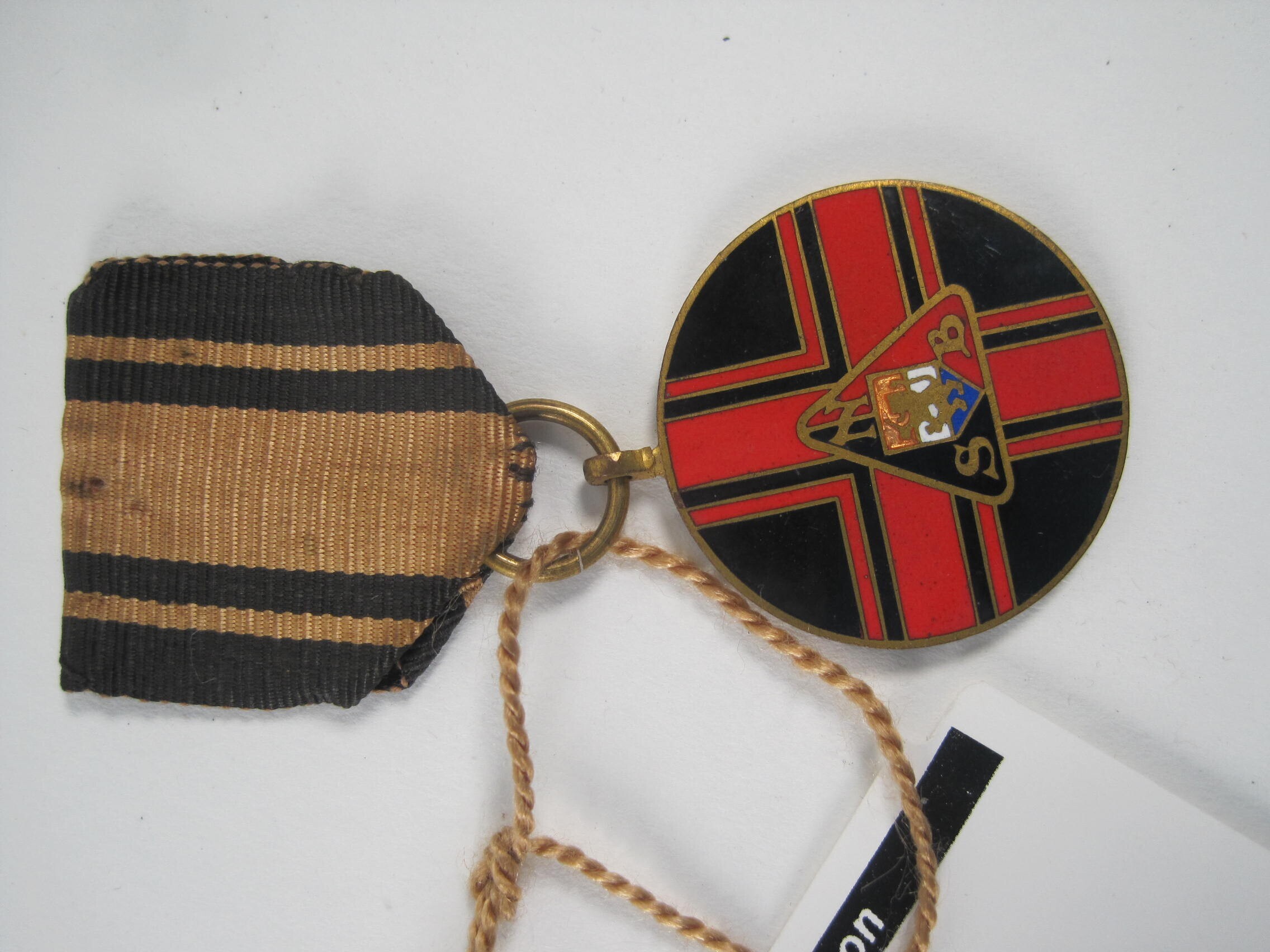 Een goudkleurige ronde medaille met op een zijde in reliëf: "N.S.B. Hou Zee. Jaarlijksche Afstandmarsch". Op de andere zijde in zwart, rood en goud het logo van de N.S.B. De medaille is bevestigd aan een zwart met rood lint.