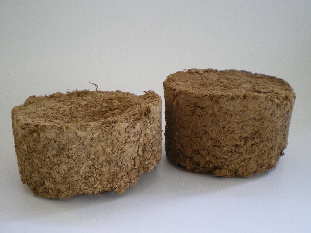 Twee ronde schijven van gedroogde mest.
