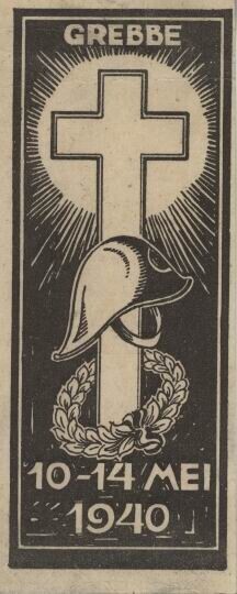 Een langwerpig stuk dik papier met zwarte opdruk. Op één zijde met de afbeelding van een kruis met een helm en een lauwerkrans en de tekst: "Grebbe 10-14 mei 1940". Op de andere kant twee palmtakken en: "De Helden zijn gevallen. Voor hun dierbaar Vaderland. Wij blijven Hen steeds eeren. Zij rusten in Gods hand".