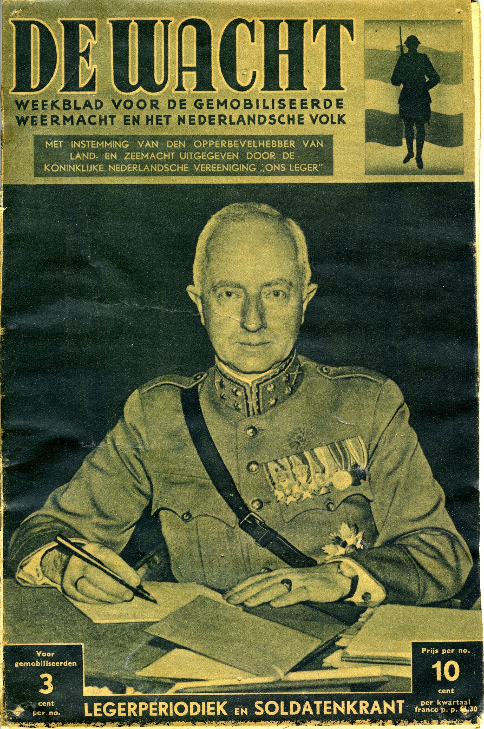 Een geïllustreerde uitgave van "De wacht. Weekblad voor de gemobiliseerde weermacht en het Nederlandsche volk. Met instemming van den opperbevelhebber van land- en zeemacht uitgegeven door de Koninklijke Nederlandsche Vereeninging "Ons leger". Jaargang no. 1, 18 november 1939. Het weekblad telt 37 pagina's.